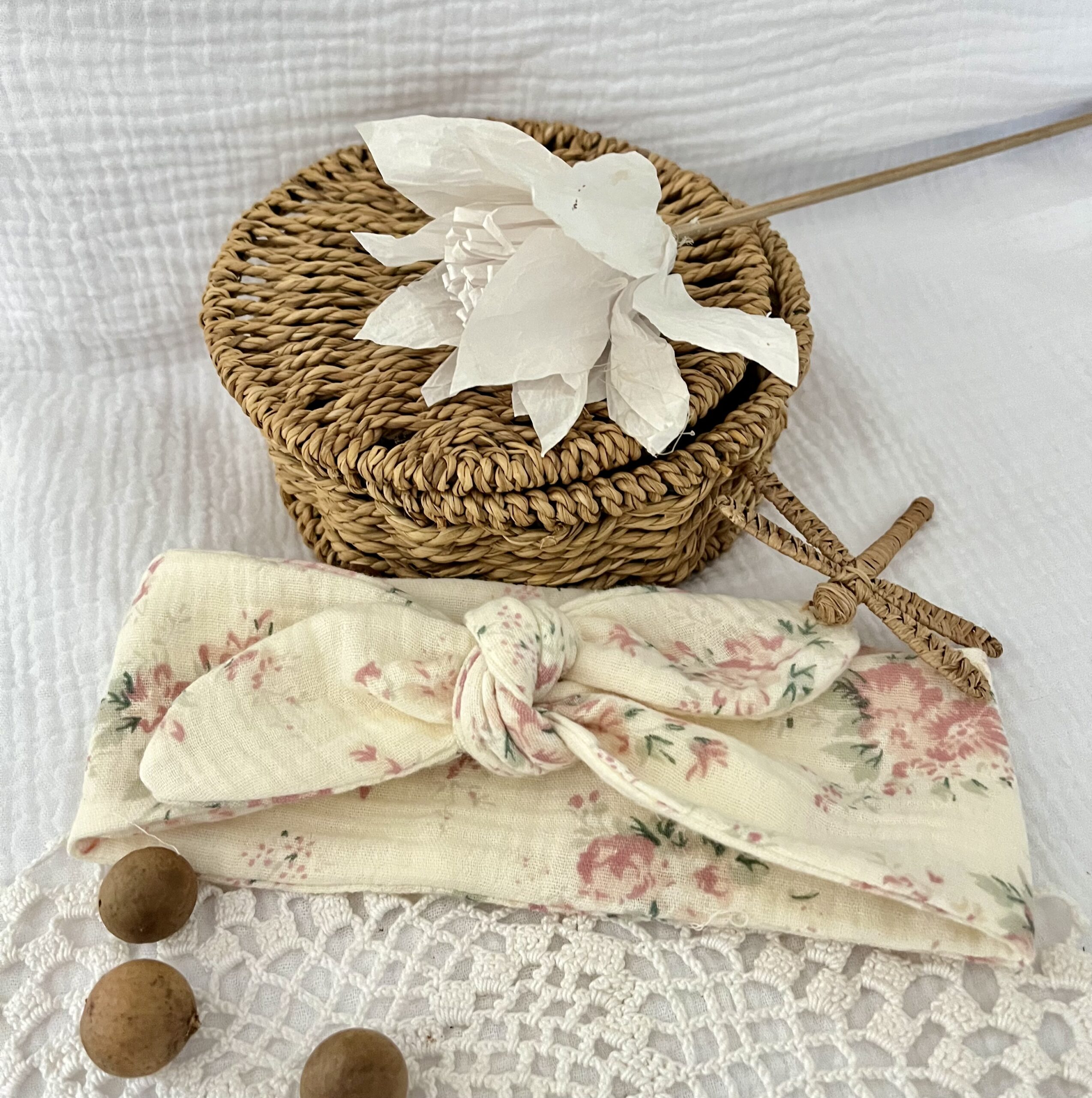 Bandeau bébé en gaze de coton fleuri.