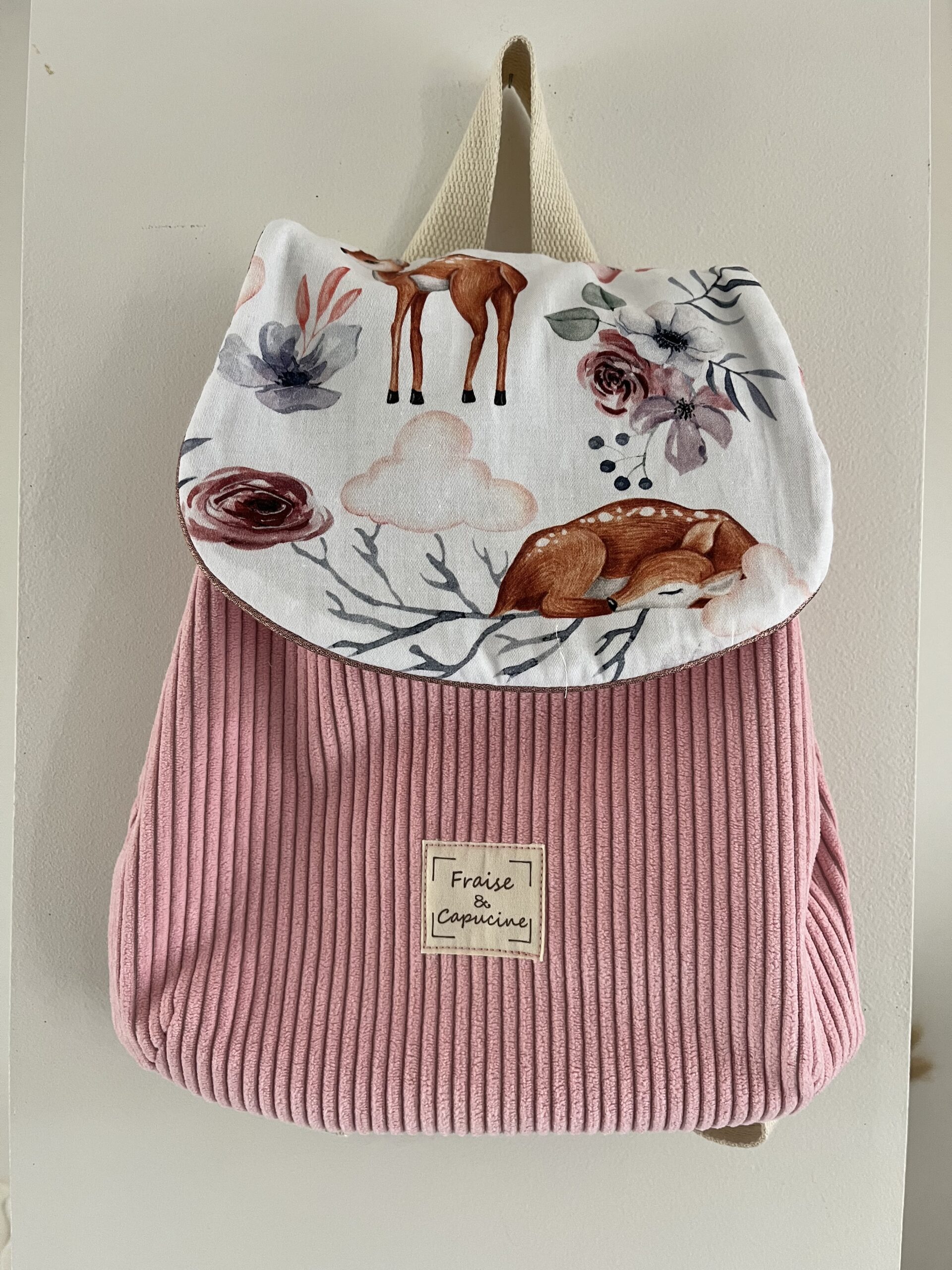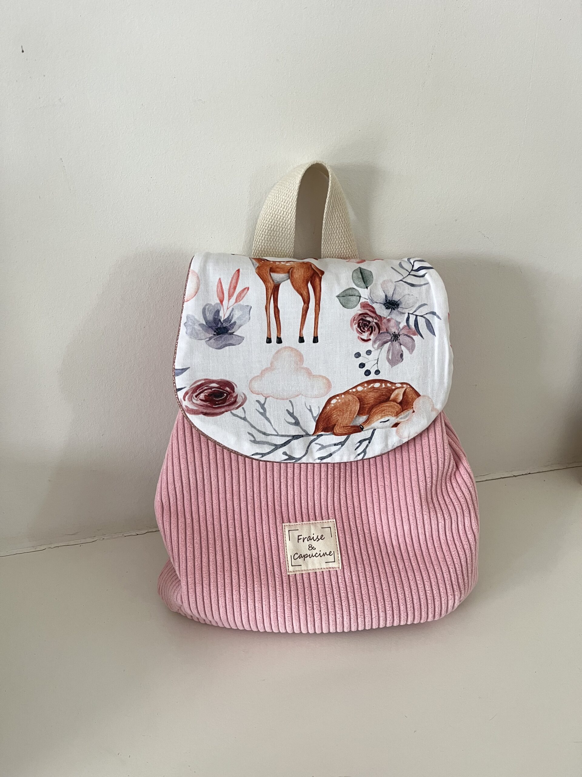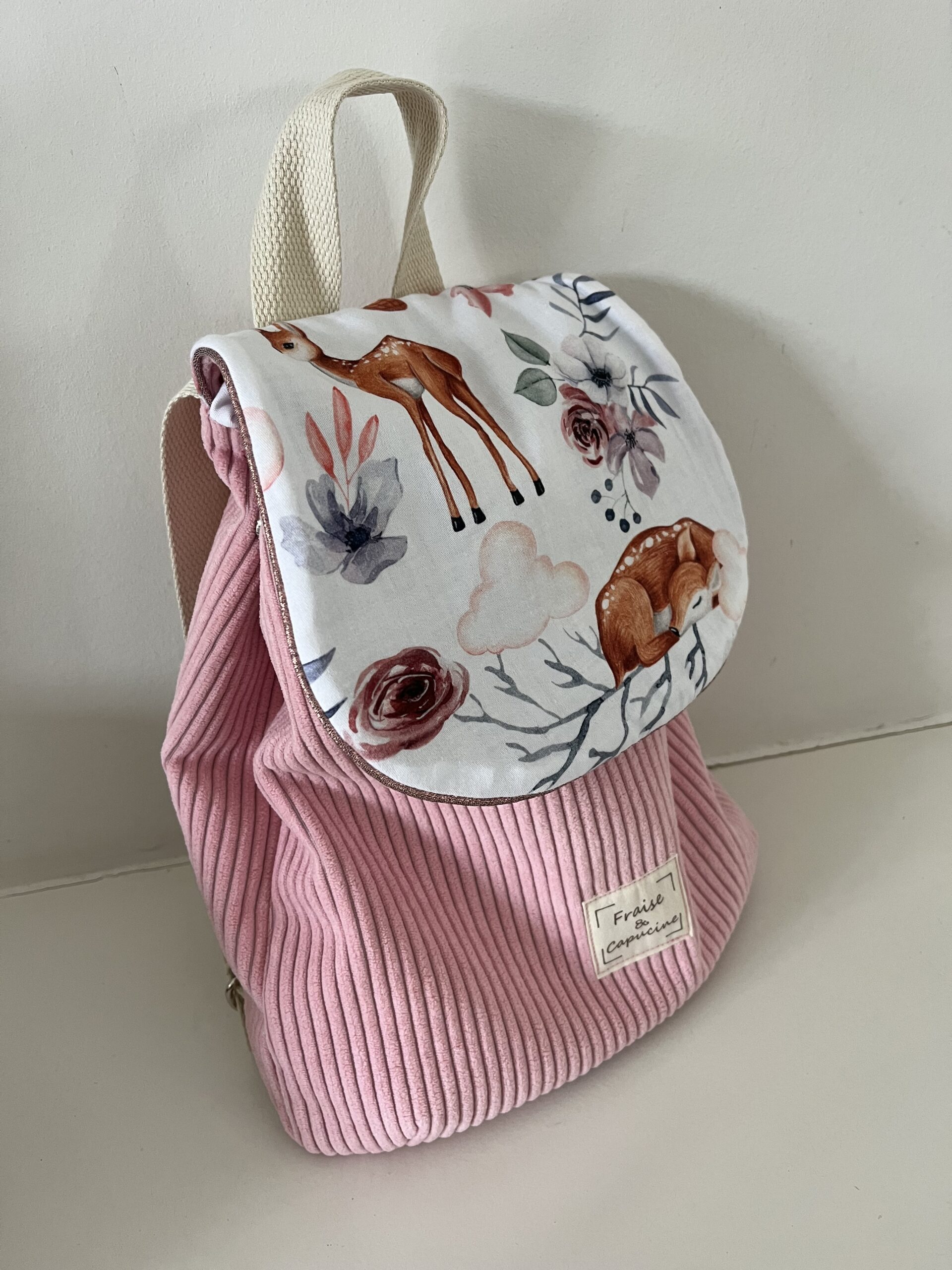 Tissu coton imprimé, tissu velours côtelé facile . Le sac est entièrement doublé.